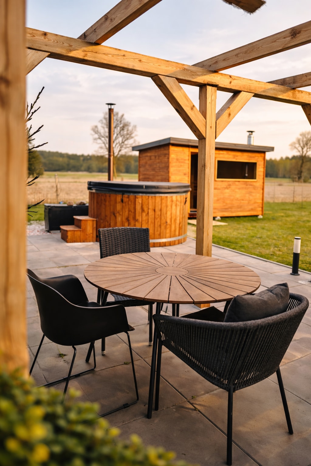 Mały kawałek raju nad Wisłą! To idealne miejsce na romantyczny wyjazd i spokojny relaks we dwoje. Domek ma duży prywatny taras z drewnianym stołem, pergolą i leżakami, a także wbudowaną w taras balię. Przy domku znajduje się również kameralny ogródek z trawnikiem, paleniskiem i grillem. Bliskość natury, cisza i wyjątkowy klimat sprawiają, że można tu naprawdę odpocząć.