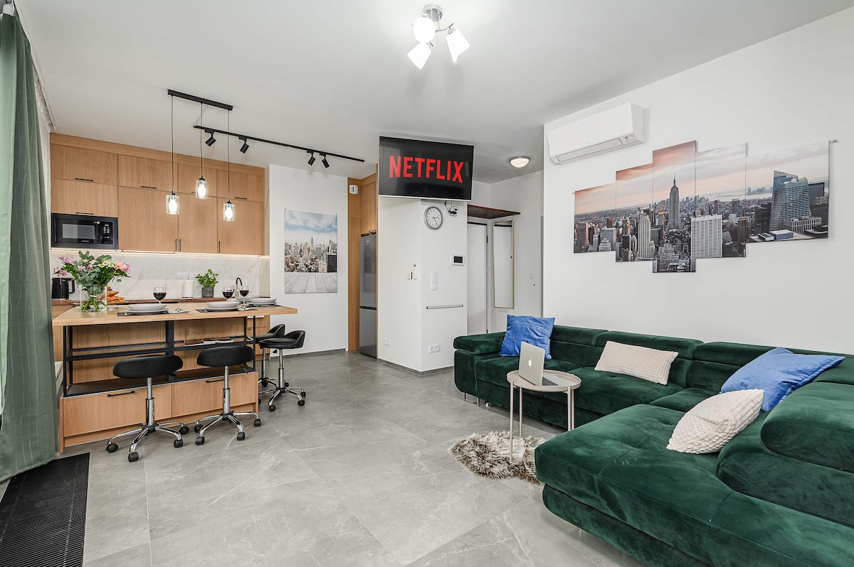Welcome to our amazing apartment in the very heart of Warszawa! This stylish and cozy retreat features 2 comfortable rooms, perfectly suited for 4 guests—an excellent choice for a romantic weekend or a trip with friends. Enjoy the comfort of the spacious living room, where you can relax after a busy day and create unforgettable memories. With modern amenities and a stylish design, our apartment will make your stay in Warszawа truly special and memorable
