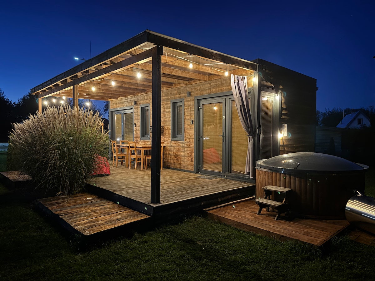 ok 60 km od Warszawy , na Mazowieckiej wsi - czekają na Ciebie dwa kameralne Tiny House . Znajdziesz tu spokój , ciszę i odpoczynek tak bardzo potrzebny w obecnych czasach. Domki pomieszczą komfortowo 2 osoby dorosłe . U nas odpoczniesz bez dzieci swoich i cudzych . Chętnie za to przyjmiemy niekłopotliwe zwierzęta. Minimalny czas najmu to 2 noce. W okresie wakacyjnym preferujemy jednak dłuższe pobyty . Korzystanie z jacuzzi i sauny wiąże się z dodatkową opłatą . Zapraszamy