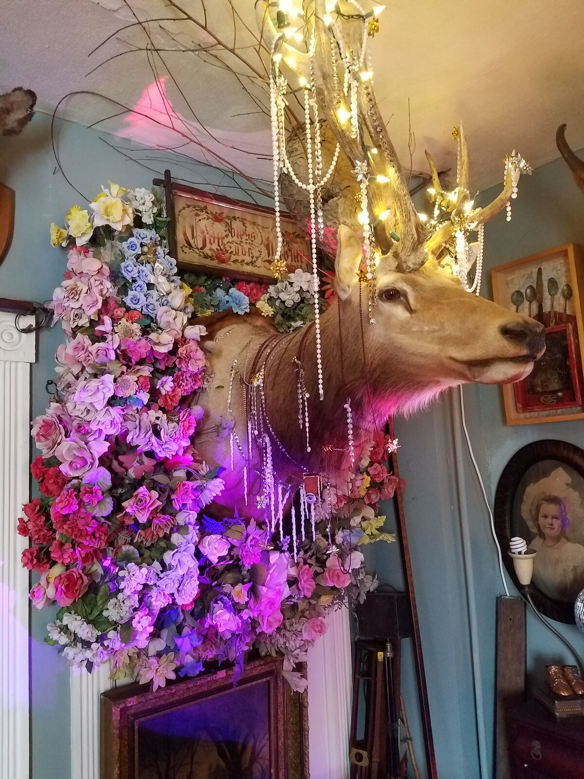 Welcome to the Freeman's Grove Benevolent Society! Artist's apartment/gallery with kitchen, bath, one bedroom, and a sleeping nook. It is an open floor plan, for heating purposes there are curtains (no doors) on the bedroom and sleeping nook. Sleeps 4 people comfortably. The walk from MASS MoCA to the house is flat except the last block which is STEEP! The apartment is a flight and a half off the street, so be prepared for some stairs. A truly unique apartment and cabinet of curiosities. #fgbs
