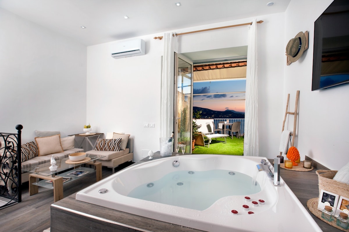 "Sorrento Sea Breeze" is a spacious 1-bedroom apartment with 3 balconies overlooking the fishing village of Marina Grande and Mount Vesuvius. Live among the locals with the comforts of a modern accommodation. Enjoy the view and relax with your partner from the intimacy of a panoramic tub. The apartment is strategically located to enjoy the livelihood of the marina and hop on a boat to Capri and Positano. Please note that the apartment is located on the 3rd floor with no elevator.