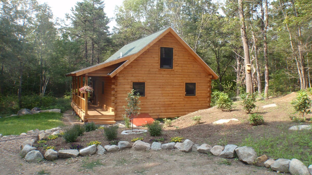 Bit of a wonderland (57 Acres, 100+ 5-star reviews). A place you won't soon forget. Complimentary firewood, 1/2 hour from Boston, camp but sleep in luxury. This cabin is privately located on a retired Christmas tree farm, about a one-quarter mile off the public road. Listen to the water flow, and watch the sunset over the wetlands. This site is ideally suited for a couple looking for an outdoor experience retiring to the comfort and security of a luxury tiny house. Everything is solar-powered.
