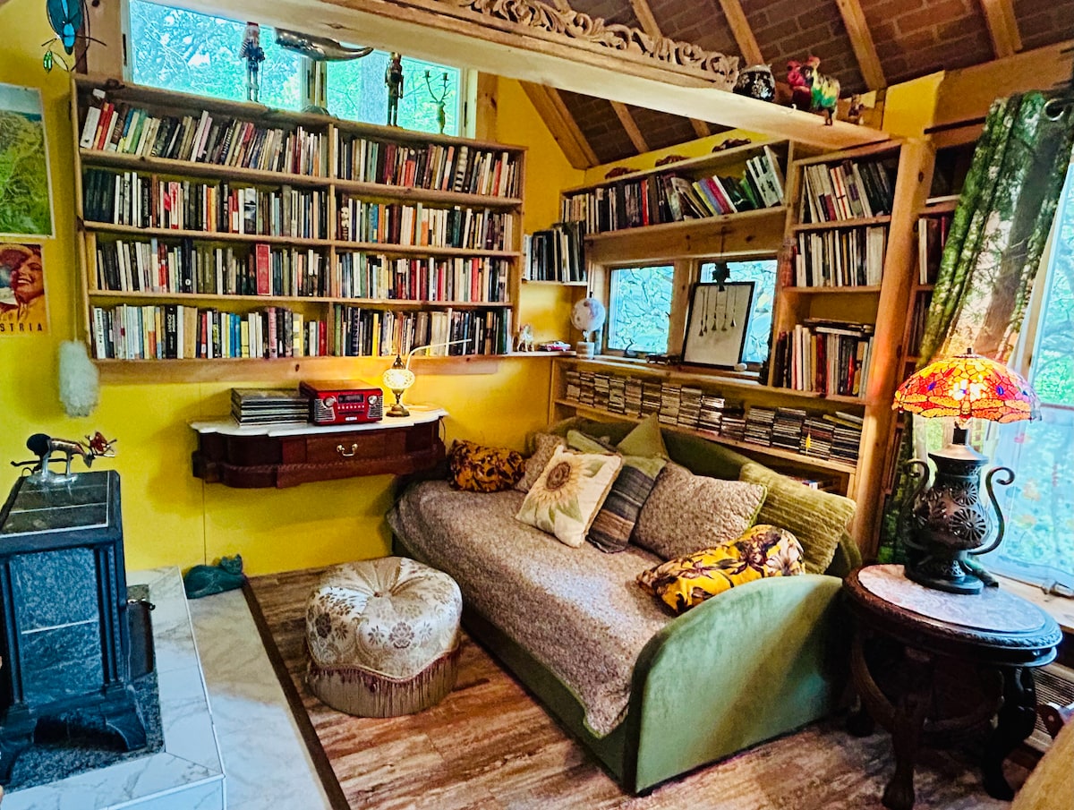 Our beloved “piece of heaven on earth” is a cabin-style tiny home filled with books—perfect for writers or a relaxing beach getaway. Perched on a gentle incline, the Writer’s Retreat feels private and tucked away among the trees. Just minutes’ drive from beaches and a short stroll to the charming center of Wellfleet. Unwind at our on-site SeaRose Spa, w/ a hot tub, saunas, & massage therapy (special guest rates) — part of our BnB property, which also includes two guest suites in the main house.