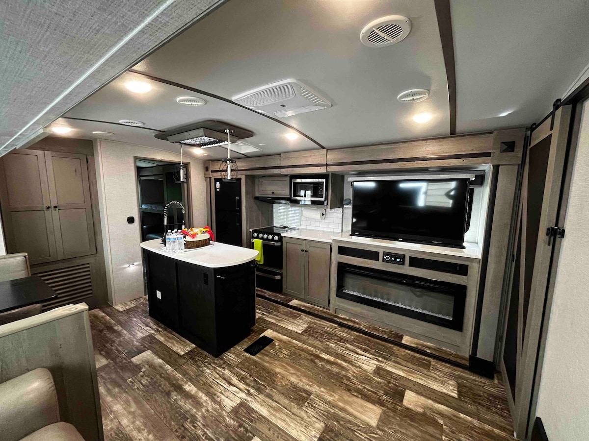 Have fun with this stylish place. This is a 2020 Keystone Outback 340BH Luxury Camping/Travel Trailer. It has everything that you will need for your getaway!
