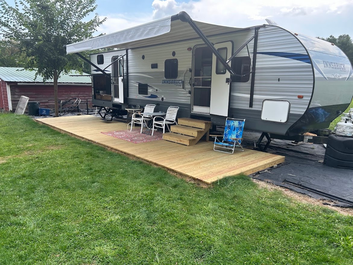 Nestled in the Berkshires with mountain views and incredible sunsets. Relax under the stars and sit around the campfire with your favorite people. Perfect for families, friends or couples. Minutes to Tanglewood! This is a beautiful RV with two slides a private master bedroom and a 4 bed bunkhouse at the opposite end. Lovely dining area, living room, kitchen and full bathroom. On its own little gravel road. We have a fire pit with wood included along with delicious well water