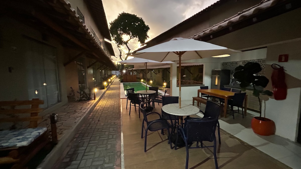Casa charmosa, minimalista, com piscina exclusiva, área gourmet, e um jardim mágico de árvores adultas, que lhe dá a sensação de estar numa mini floresta. Situada numa área privilegiada da vila de Massarandupió, cercado de árvores, o Recanto AmarElo Bangalô é o lugar ideal para quem busca natureza, conforto e privacidade.