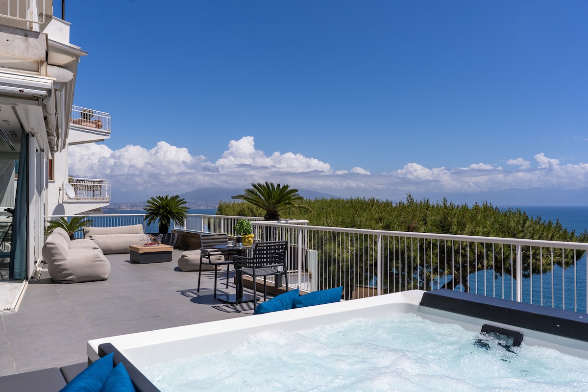 Recentemente ristrutturato in stile contemporaneo l'appartamento gode di una vista spettacolare sul Golfo di Napoli, dal Vesuvio a Capri. Posizionato all'ultimo piano di una villa storica con ascensore. L’attico si compone di un grande spazio living con cucina a vista, due camere matrimoniali, due bagni ed un terrazzo privato. Inoltre, gli ospiti potranno usufruire gratuitamente di un posto auto privato all'interno del cortile ma non custodito.
