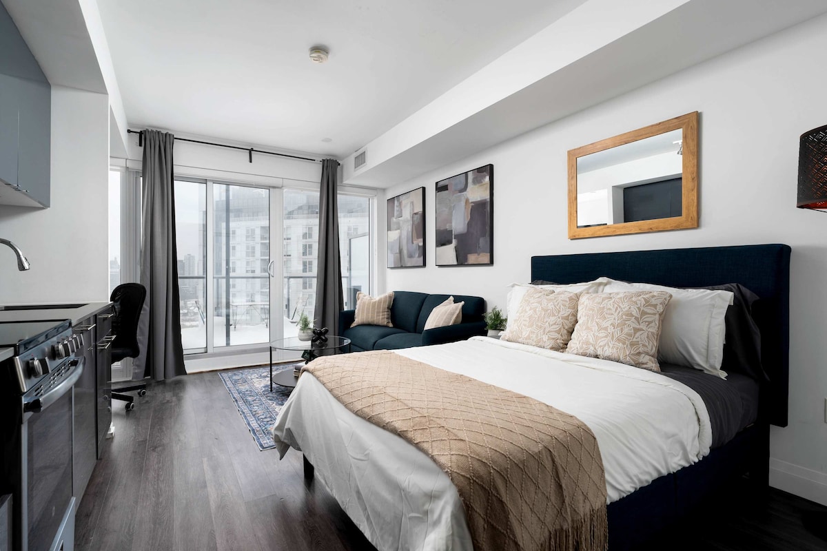 时尚的1床公寓,位于多伦多市中心,带停车位和阳台
