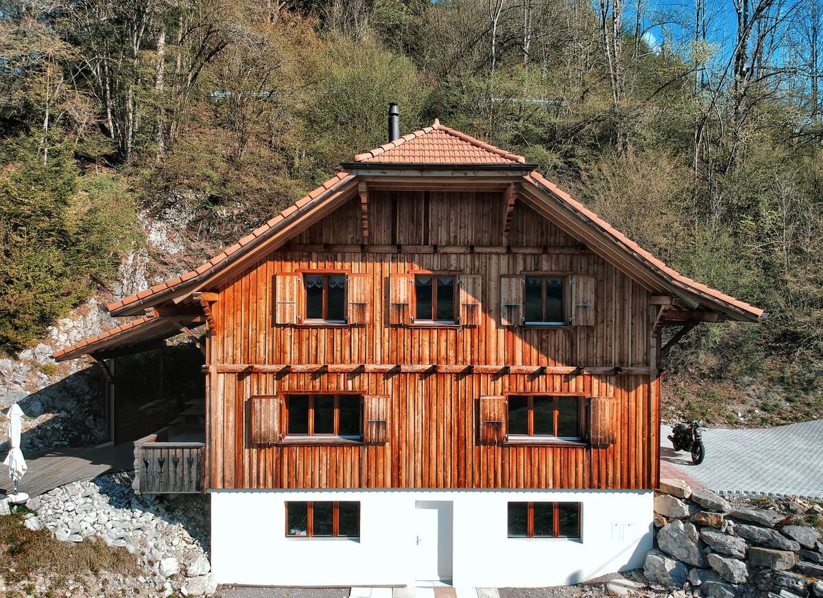 Discover the Gruyère region by staying in front of the unique panorama of the Gastlosen, in the calm and sunshine, 5 minutes from Charmey (ski lifts, thermal baths) and 10 minutes from Gruyères, 35 minutes from Montreux/Vevey and Fribourg, 1 hour from Lausanne. Many hikes are possible from the chalet, such as the Mont Biffé, or the Tour du Lac de Montsalvens. Our fully equipped chalet is perfect for a couple or a family: wifi, TV, fitted kitchen.