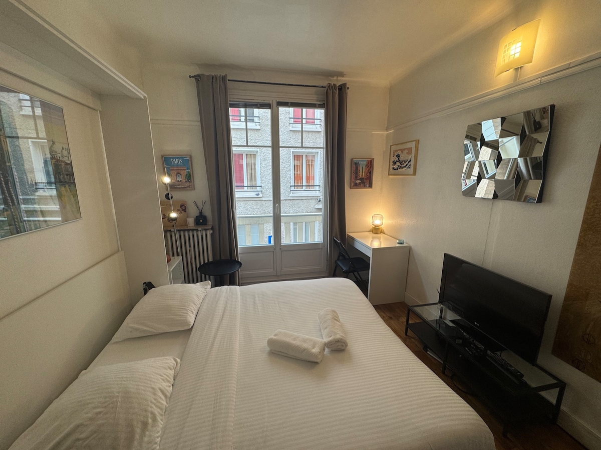 Overlooking our stunning inner courtyard and the charming neighboring church, your pied-à-terre offers open views, incredible natural light, and absolute tranquility—right in the heart of Paris. Each apartment includes a living room with a sofa bed, a dining area with a round table, a beautiful bedroom featuring a luxury hotel–quality bed, a fully equipped open kitchen with a dishwasher and washer-dryer, a shower room, and a separate toilet.