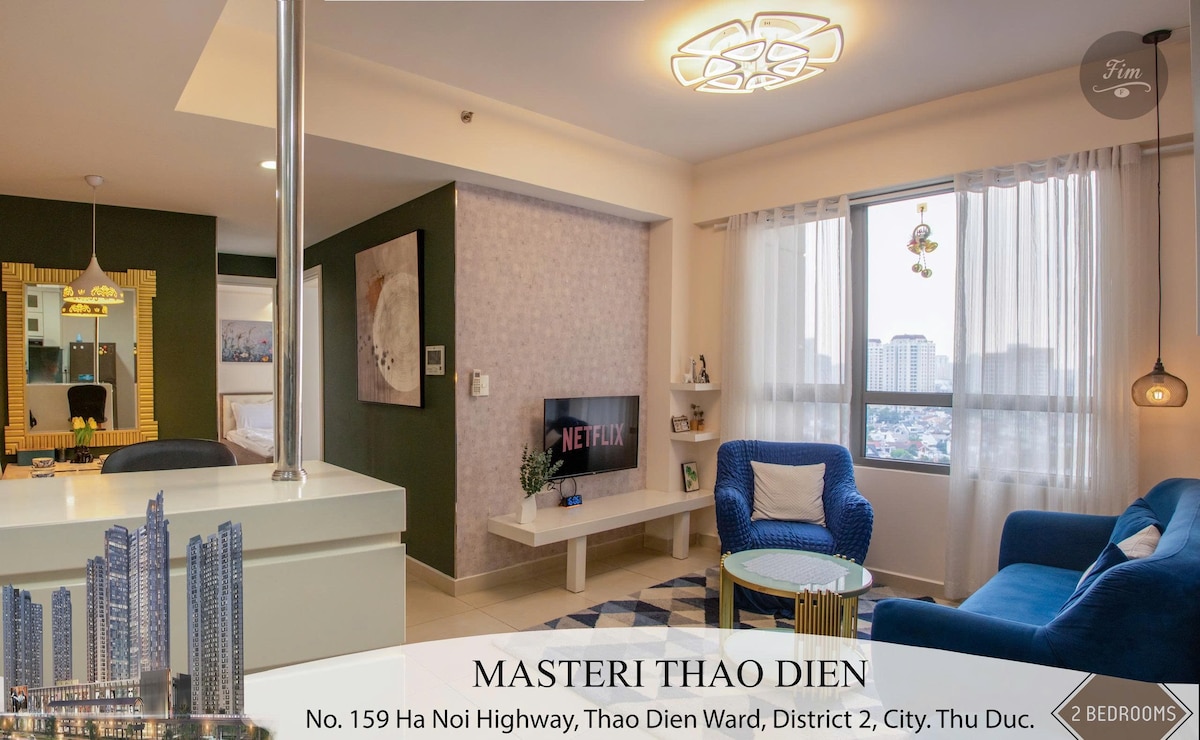 Căn hộ Masteri Thảo Điền cách trạm Metro An Phú 3 phút đi bộ, dễ dàng cho bạn di chuyển lên trung tâm bằng tàu điện. Căn hộ nằm trong khu vực người nước ngoài tập trung sinh sống ở Thảo Điền. Căn hộ này chỉ cách Vincom Megamall vài bước chân, nơi đây có nhiều cửa hàng, nhà hàng, khu giải trí, rạp phim. Căn hộ có ban công riêng, hồ bơi, phòng Gym. Khách hàng được truy cập WiFi tốc độ cao 300Mbps miễn phí tại căn hộ. Căn hộ có bếp được trang bị bếp điện từ, lò vi sóng, các dụng cụ nấu ăn cơ bản.