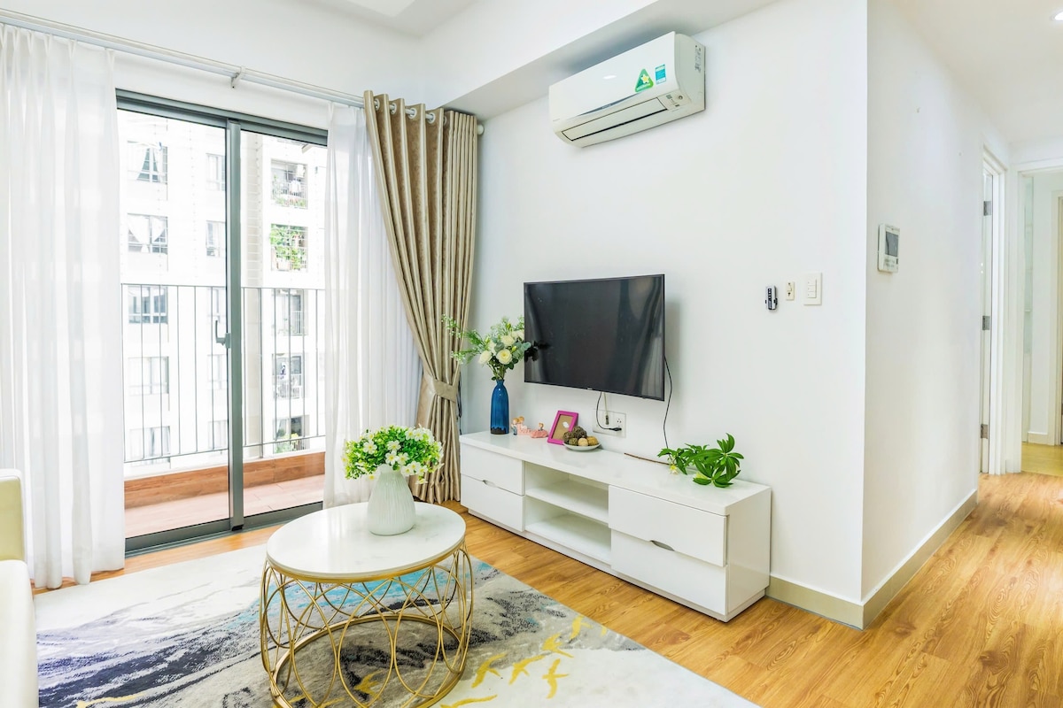 Modern luxury apartment, fully equipped. high-quality furniture, located on Masteri Block 2 Building's 15th floor- a well known high-class community for foreigners in Ho Chi Minh City. Just minutes away from shopping malls, bars, cafes & restaurants in Thao Dien. Has 2 bedrooms, 2 WC which fit a whole family, group of friends. Guests will enjoy free high speed wifi, Netflix, swimming pool & gym. Long-term lease and car rental available. 24/24 security staffs. Please contact us for details.