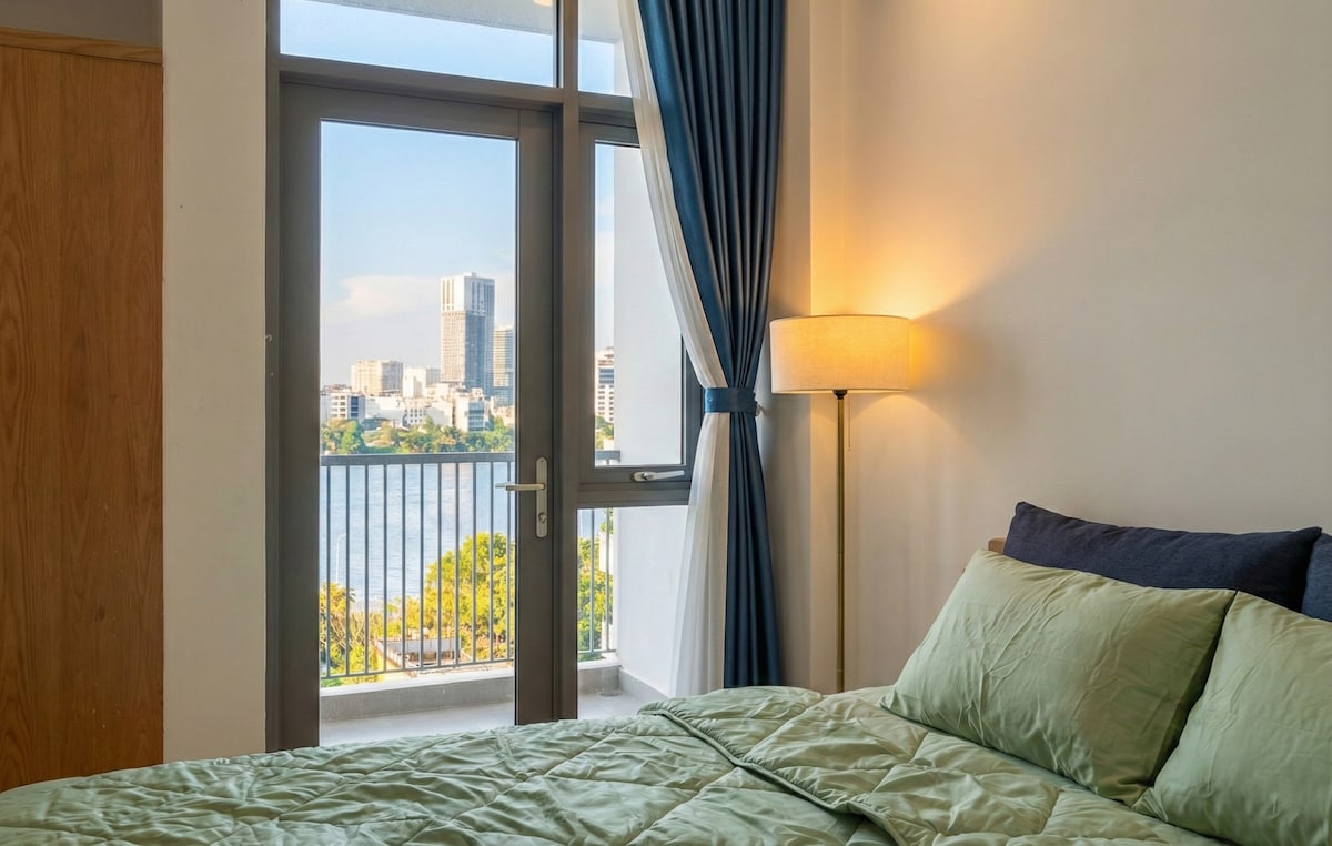 Trải nghiệm không gian sống hạng sang tại Duplex Penthouse mới xây, phong cách Wabi-Sabi độc bản. Tận hưởng tầm nhìn ôm trọn sông Sài Gòn, cầu Ba Son và Quận 1 từ cửa kính full-height, đặc biệt đẹp về đêm. • Vị trí kim cương: 5-10 phút đi bộ đến Công viên bờ sông & Metro Ba Son. • Nội thất xa xỉ: đàn Piano, Smart TV 86", đèn chùm lớn, bồn tắm thư giãn. • Không gian: 3 phòng ngủ, tràn ngập ánh sáng, lý tưởng cho 4-6 người.