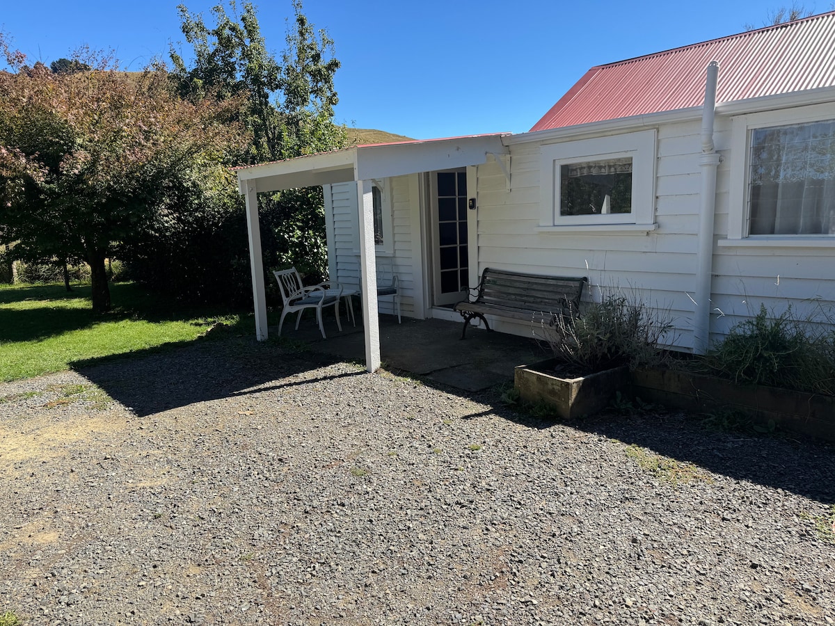 A 1920's cottage, that is light and warm with plenty of sunny spots, especially on the back porch. Open plan, with easy indoor/outdoor flow. Private and restful. You will love its cosy homeliness and be able to relax in its beautiful setting. With unfenced section it is unsuitable for a family with under two year olds. Easy walking distance to small supermarket, cafe, fish and chip shop and other Essentials. Two playgrounds around the corner. Or stay home with books, puzzles, games.
