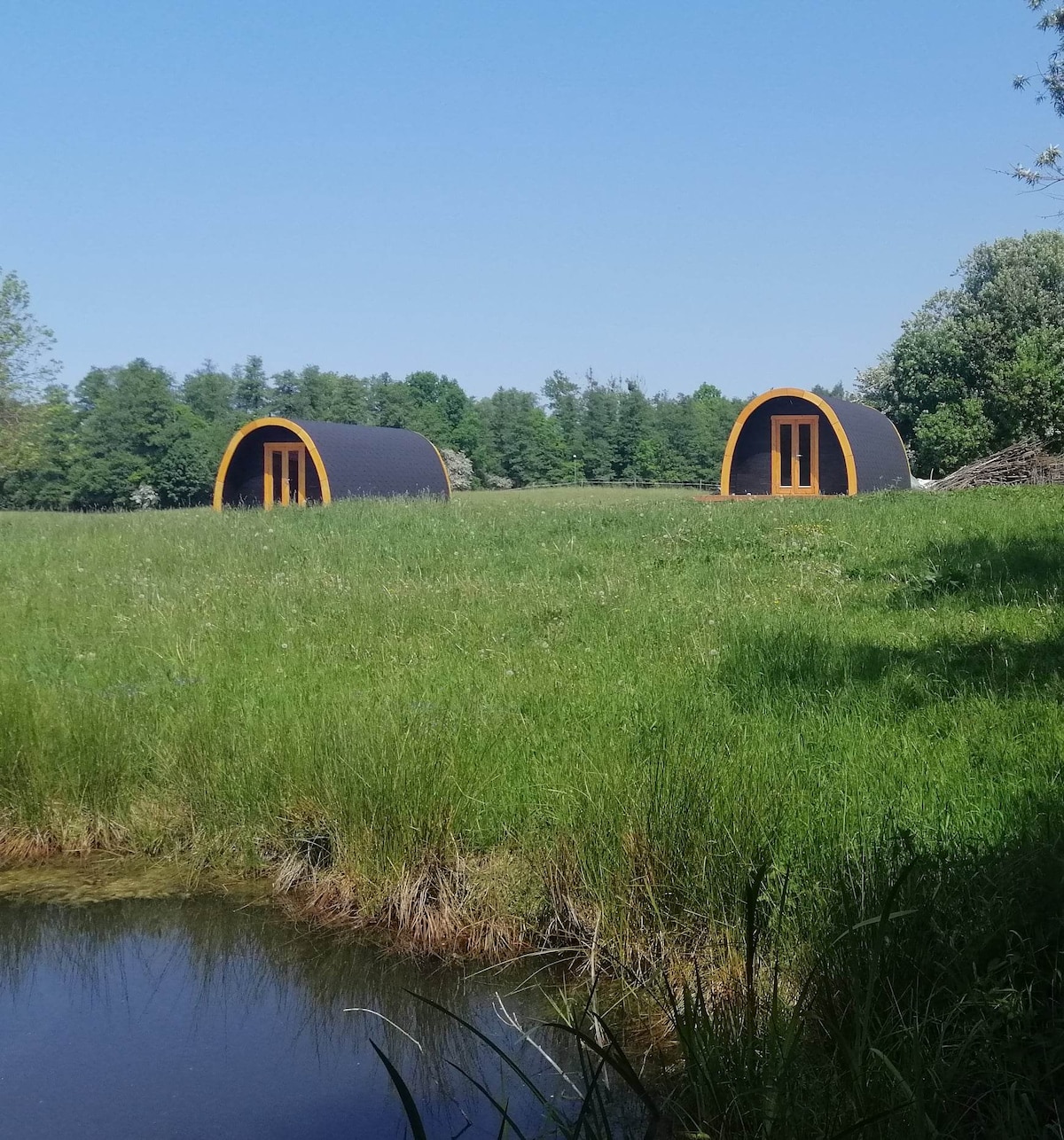 Bright and airy, open plan timber cabin set in beautifully peaceful Polish countryside. Surrounded by forests, meadows and duck-pond. Many lakes nearby! Domek z bala, plan otwarty i przeztrzenny w pieknej spokojnej okolicy na Mazurach. Otoczony lasami, polami; ze swoim wlasnym stawem. Blisko jeziora!