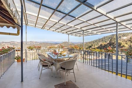 Perched at 7,500 ft in Uttarakhand, our 3,200 sq. ft. homestay offers modern comfort with 270° Himalayan views. Surrounded by lush flora and fauna, it's a serene escape near Kainchi and Mukteshwar Dham. Enjoy elegant interiors, cozy evenings, panoramic balconies, and nearby nature trails. Perfect for peace seekers, families, and nature lovers—your ideal mountain sanctuary awaits. Parking is available on the main road at your discretion and there is a 180 metre walk from the parking to property