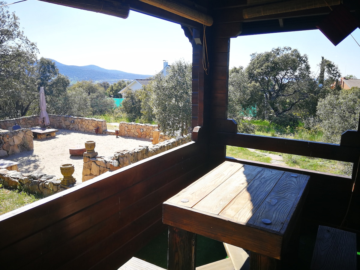 Una casita de madera creada estilo palafito con la intención de no molestar a las piedras que habitan el terreno. Cuenta con una habitación doble, un baño completo, cocina, comedor, salón, terraza, jardín y unas increíbles vistas al Parque Regional de la Cuenca Alta del Manzanares.