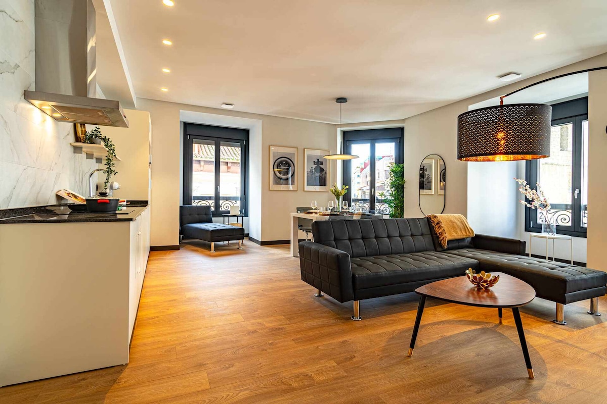 Disfruta de este amplio y luminoso apartamento ubicado en pleno centro histórico de Cuéllar. Su ubicación privilegiada te permitirá disfrutar de unas vistas únicas llenas de historia, tranquilidad y autenticidad castellana. El alojamiento cuenta con: ✔ 2 habitaciones cómodas, una de ellas con terraza privada. ✔ Salón amplio con techo inclinado de madera. ✔ Cocina completamente equipada. ✔ Wi-Fi, calefacción, ropa de cama, toallas.. 🧹 Nos tomamos muy en serio la limpieza y el confort.