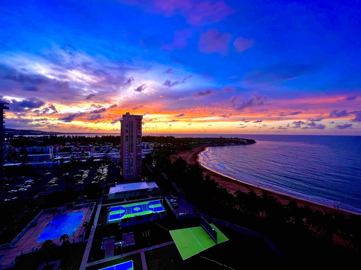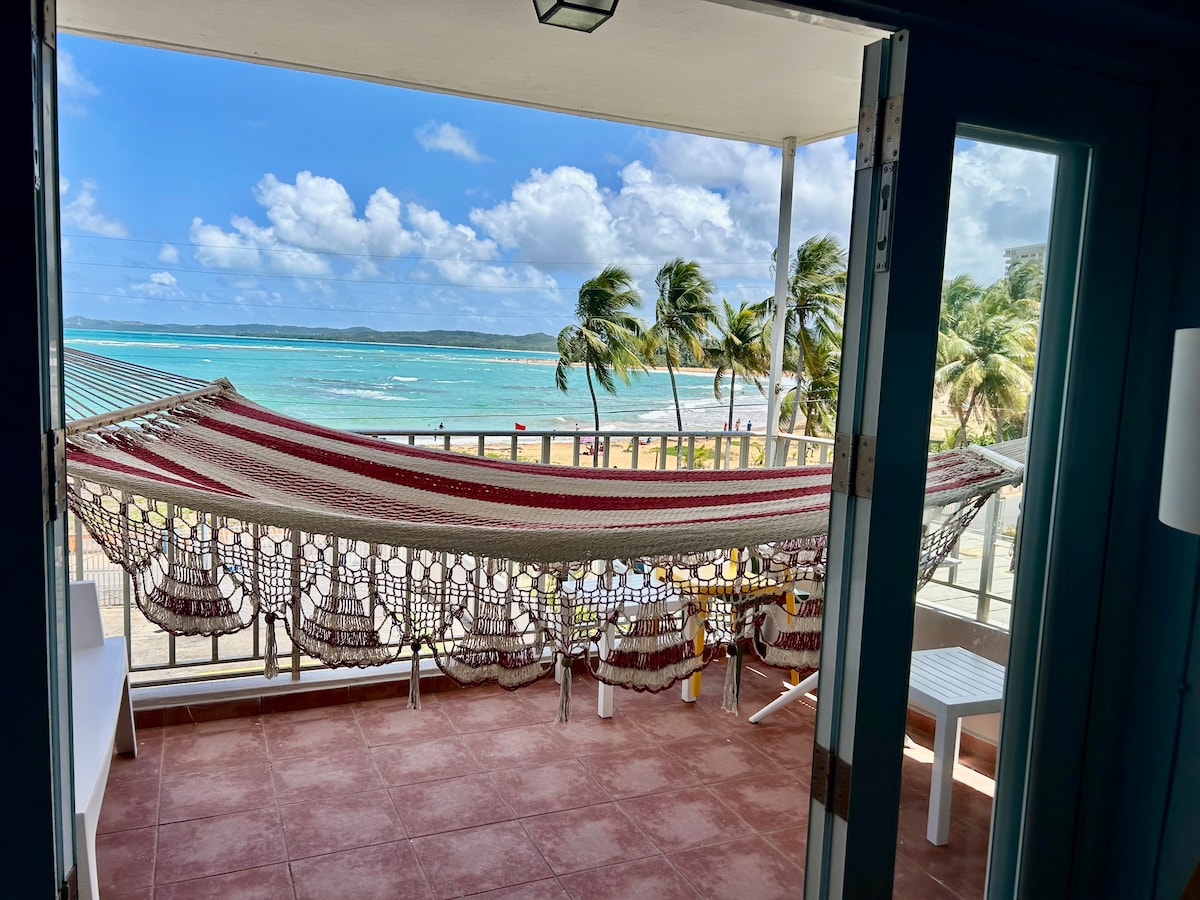 Our Amazing Beach Front Apartment it's located on the 8th flr so you have unobstructed view of the Ocean. Enjoy your coffee in the Morning, while feeling the Ocean breeze, then take stroll towards the beach (about 1/2 block). It's clean, modern and inviting for couples and families. It is also close to main attractions of the East of Puerto Rico, including Kioskos of Luquillo, the Rain Forest (El Yunque) and the Bio Bay. The Unit it's complete with Beach towers & Chairs and a complete Kitchen.