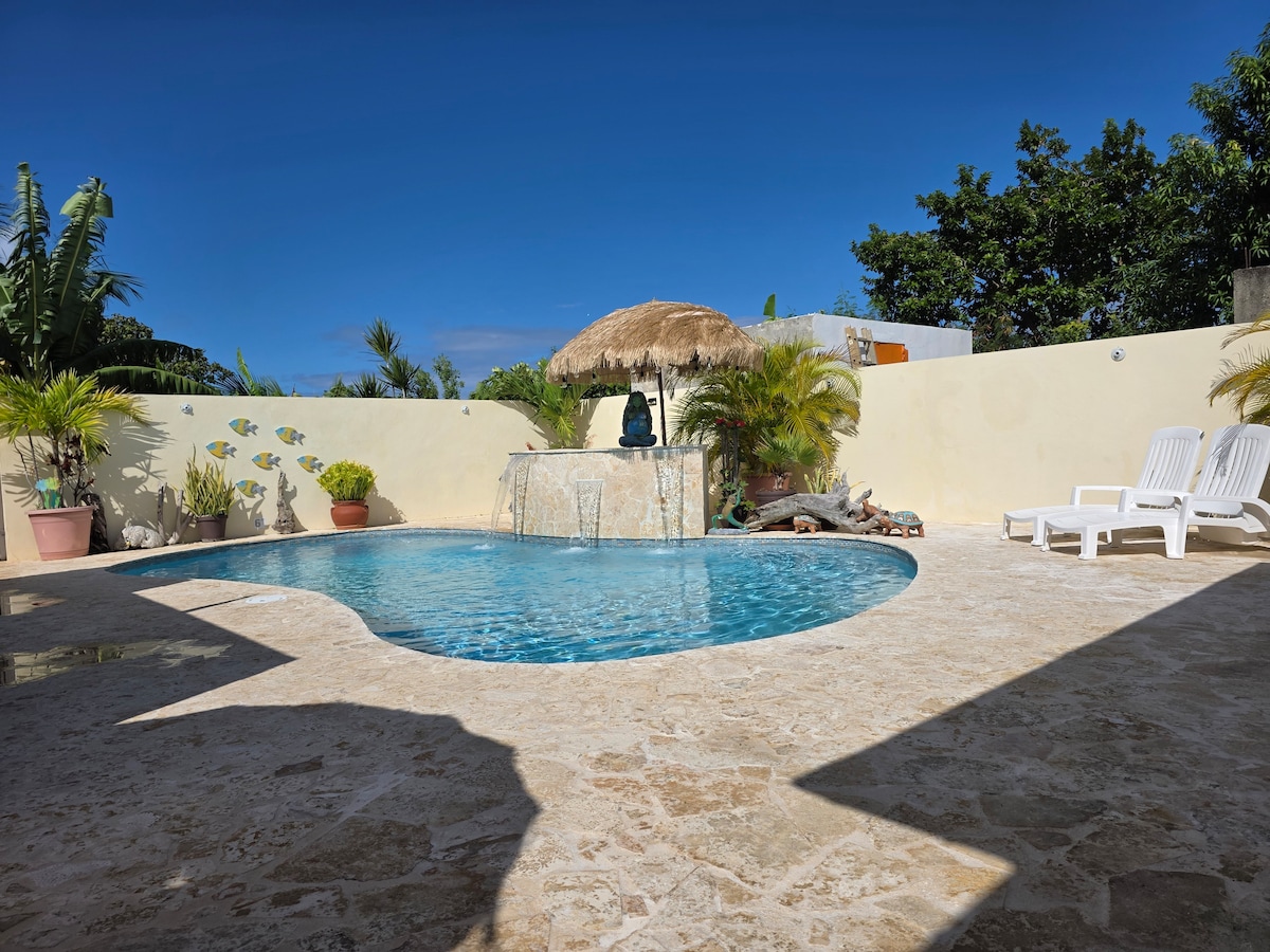This charming home is fully fenced and gated for privacy, just across the street from the beach, featuring a spacious outdoor living area, pool/hottub and plenty of seating for family gatherings. Location, location, location! Steps from the sand and a short stroll to the famous Luquillo Kiosks. 10 mins to ElYunque rainforest, 11 miles to a bright Bioluminescent Bay, 10 mins to the Vieques & Culebra ferry, and 40 mins to San Juan & the airport. Fall asleep to the soothing sound of crashing waves.