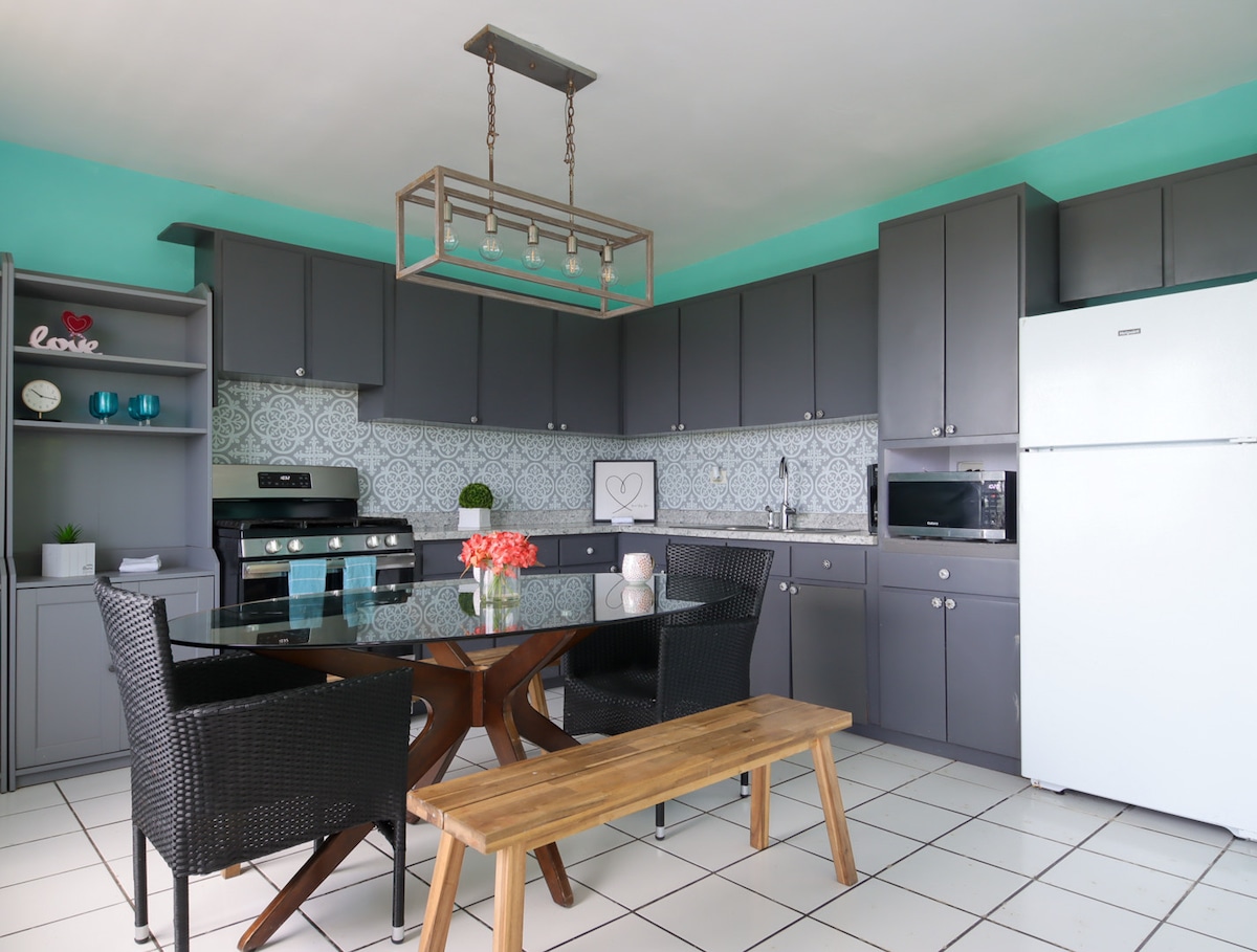 Una Joya a pasos de playa azul y cerca de las principales atracciones turísticas del área este. Alojamiento de 2 niveles recién renovado con aire acondicionado en todas las habitaciones y sala de estar. Terraza con jacuzzi privado y área de BBQ. A pocos pasos de restaurantes, supermercado, farmacias y vida nocturna. A menos de 30 minutos del Yunque, Bio Bay, ferry a Culebra/Vieques, Seven Seas y más! Kioskos de Luquillo a 4 minutos, 9 minutos Carabalí. A solo 26 millas del aeropuerto SJU 🛬