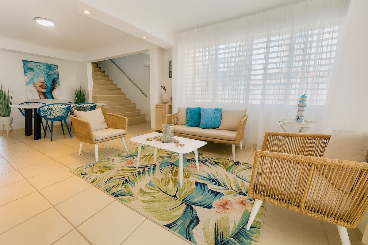 Welcome to our beachfront apartment in Punta Bandera, Luquillo, Puerto Rico! Enjoy direct beach access in our 2-bedroom, 2-bathroom, first floor home. Indulge in the peace of Punta Bandera Beach in the clearest water anywhere, perfect for families and children. A short drive takes you to the enchanting El Yunque Rainforest, offering lush trails, waterfalls, and breathtaking vistas. Our apartment is also close to restaurants, bars, and shops for a taste of local culture.