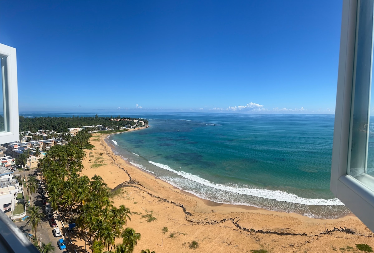 This is a 15th floor 1 bedroom apt. steps from the beach with a spectacular beach front view from the balcony in Tower I. It has high speed internet, 2 Smart TV's, air conditioners, washer, dryer and fully loaded kitchen. It is 35 minutes from Luis Muñoz Marin Airport and Old San Juan. Additionally it is nearby from El Yunque Rainforest, and 2 min. from the "kioskos de Luquillo & Luquillo Beach". It accommodates 2 people with private parking for rental vehicle and 24/7 security.
