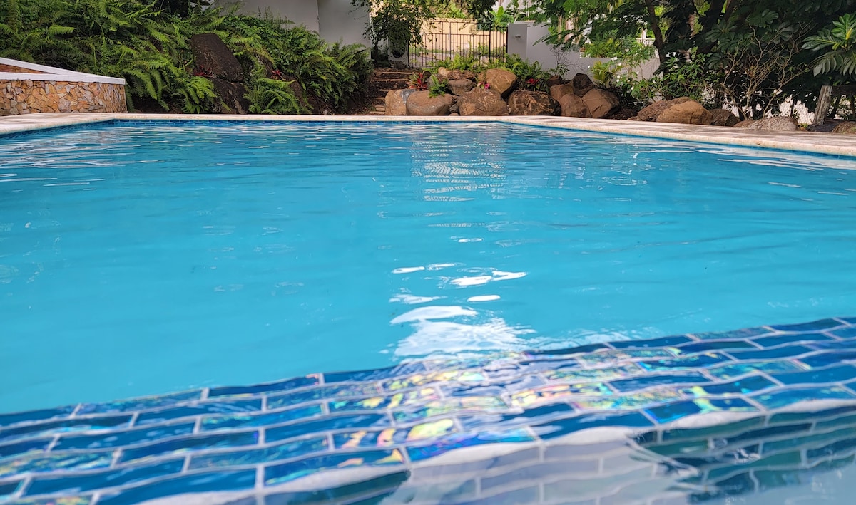 This Guest Suite, on the lower level of our exclusive luxury villa, Casa Encanto, is the perfect tropical getaway. Nestled in the peaceful and lush foothills of the El Yunque Rain Forest, Located in Luquillo with many nearby attractions. You’ll have easy access to downtown Luquillo, El Yunque National Rainforest, Luquillo Beach, Caribali Adventure Park, Las Paylas, charter boat trips, snorkeling, zip lines and much more. The Guest Suite is fully solar with Tesla Batteries and backup water