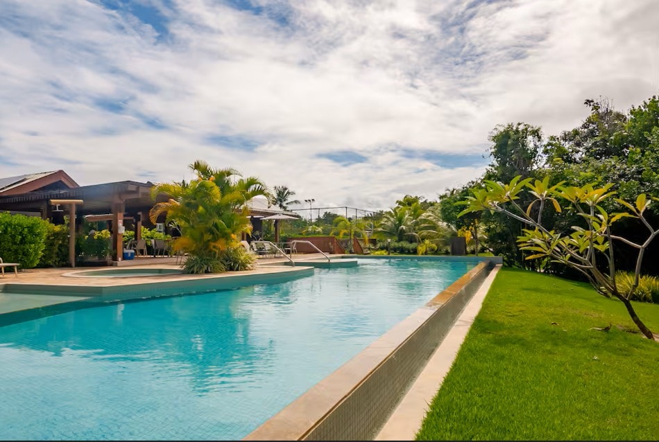 Descubra o melhor de Praia do Forte no At Home Bahia! Dentro do Condomínio Villa da Enseada, com acesso interno de 800m próximo à Praia do Tivoli, com estacionamento exclusivo disponível. Nosso Village, com 900m de distância do centro de Praia do Forte foi criado para receber famílias que buscam por um momento de descanso de qualidade. Vista nascente, varanda térrea de frente para um lago, silencioso e com jardim vertical, com uma privacidade diferenciada dentro do condomínio.