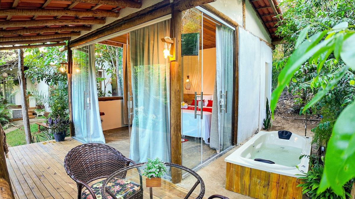 O Chalé Aroeira é um refúgio romântoco em meio à Reserva da Sapiranga.Amplo,acolhedor e rodeado pelo verde, oferece conforto, silêncio e contato direto com a natureza. Ideal para quem busca descanso, privacidade emomentos especiais na pousada Aruana.