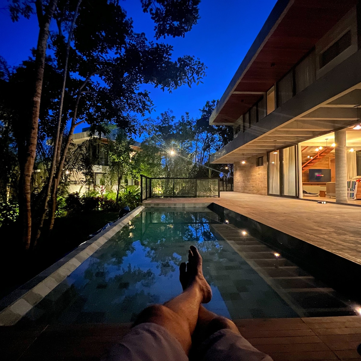 A Casa Riviera é aconchegante com piscina privativa, perfeita para relaxar em família ou com amigos. Desfrute de momentos incríveis em um paraíso tropical! São 4 suítes completas com ar-condicionado e TV, e 1 quarto com banheiro ao lado. Aluguel mínimo 2 diárias. O Condomínio Ilha dos Pássaros, na Mata Atlântica, fica a 2 km da Vila e Praia do Lord, mas tem o serviço de TRANSFER de sexta até domingo, além de restaurante e delivery no clube, Casa Dona Eró. Energia e água pagas no fim da estadia.