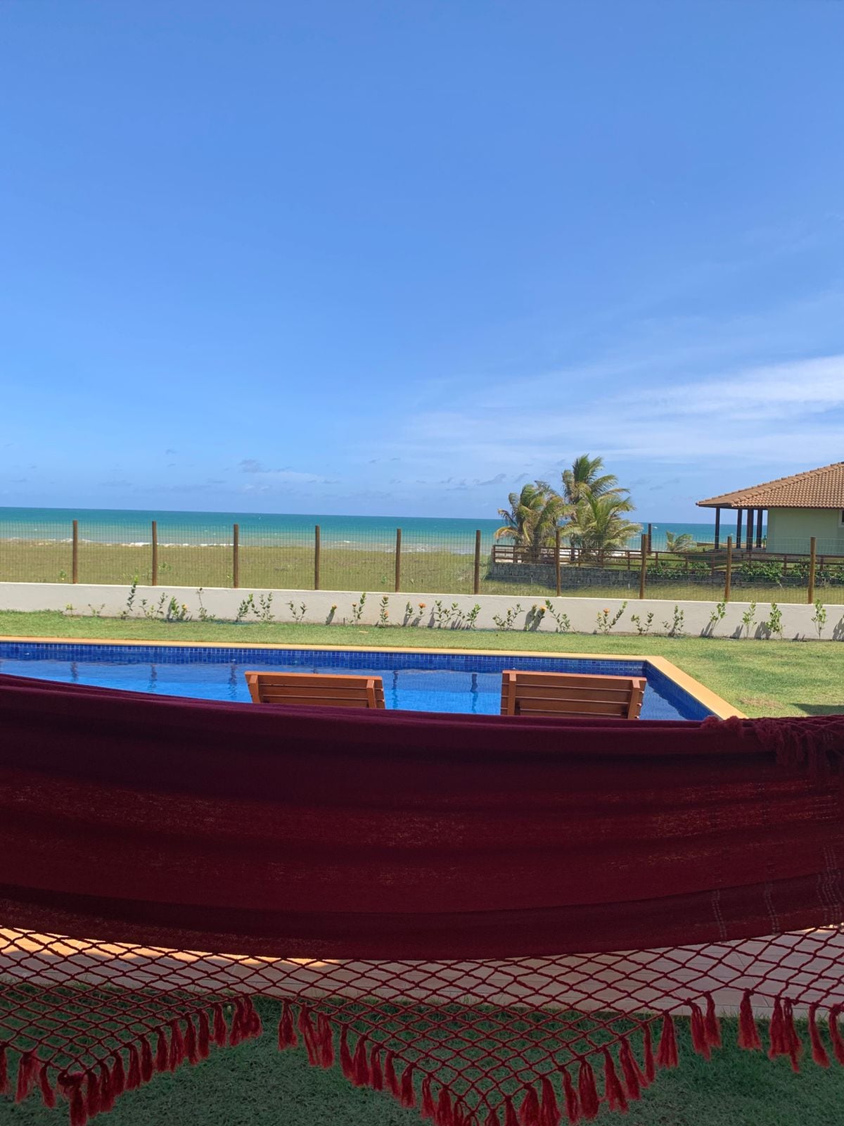 The apartment is located in Village Lagoa Ville, right on the beach. The condominium has a swimming pool, barbecue area, and leisure area. It has two suites, a living room, an equipped kitchen, a balcony, and a small terrace on the 2nd floor. Each bedroom has a double bed, and one of them has two extra mattresses. It has 24-hour concierge service and local security. Next to it is the Itacimirim Lagoon, a calm and secluded environment. It is 5 km from Praia do Forte. Wi-Fi, Netflix, and books.