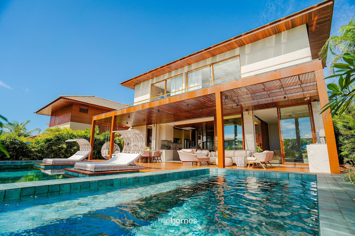 Live unforgettable moments in this unique and family-friendly place. A paradise to feel pleasure and peace with style and safety. The private space has an infinity pool with waterfall, heated hydro, hammocks, games room, swing and poufs, rackets for beach tennis, complete fun. The common space has a gym, swimming pools, saunas, courts, children's playgrounds, pool bar with support from the Souza bar da Vila, van service to the village and beach support with chairs and umbrellas.