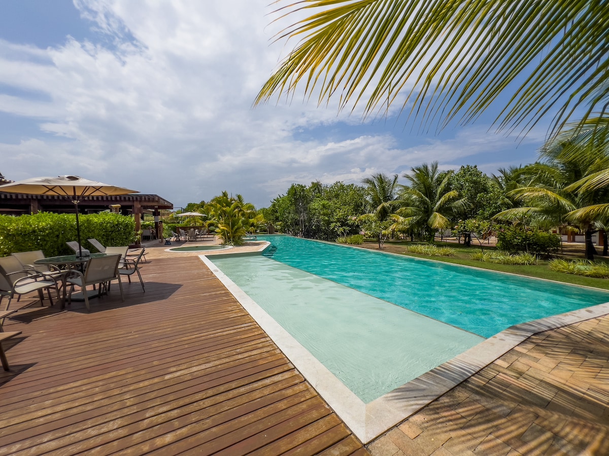 Spectacular 2-bedroom apartment (1 suite) with private garden and barbecue right by the pool inside the Iberostar Praia do Forte Complex. Very safe for families. The complex has a private beach with umbrellas and chairs on the sand for you to enjoy. We have AIR CONDITIONING in the living room and bedrooms. Fully equipped apartment: towels, bed linen, washing machine, barbecue. Perfect to explore Bahia and its beaches, staying in comfort, luxury, and 24h security. For your family: Welcome!