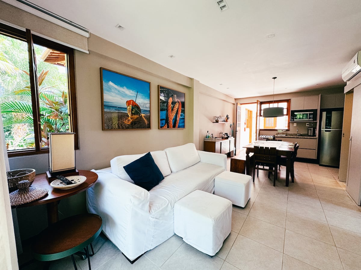 Spectacular 2-bedroom apartment (1 suite) with private garden and barbecue right by the pool inside the Iberostar Praia do Forte Complex. Very safe for families. The complex has a private beach with umbrellas and chairs on the sand for you to enjoy. We have AIR CONDITIONING in the living room and bedrooms. Fully equipped apartment: towels, bed linen, washing machine, barbecue. Perfect to explore Bahia and its beaches, staying in comfort, luxury, and 24h security. For your family: Welcome!