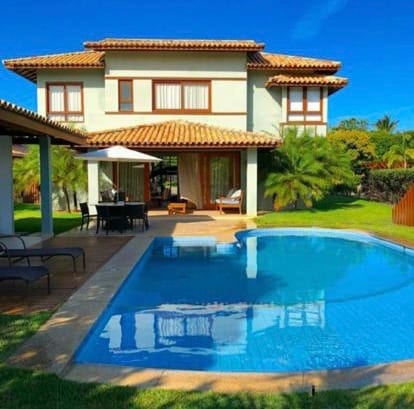 Casa ampla com 4 quartos climatizados, bastante espaço para curtir com a família e amigos com o melhor custo benefício! Possui ampla área externa com piscina, churrasqueira, área gourmet, rede e sofás. Área interna com cozinha americana completa e sala de estar com TV e WI-FI na casa toda. A casa possui 4 quartos todos com ar condicionado e 4 banheiros. Tudo isso na tranquilidade da reserva Sapiranga a 10 min. de carro da vila de Praia do Forte. Além disso, próximo de varias outras comodidades