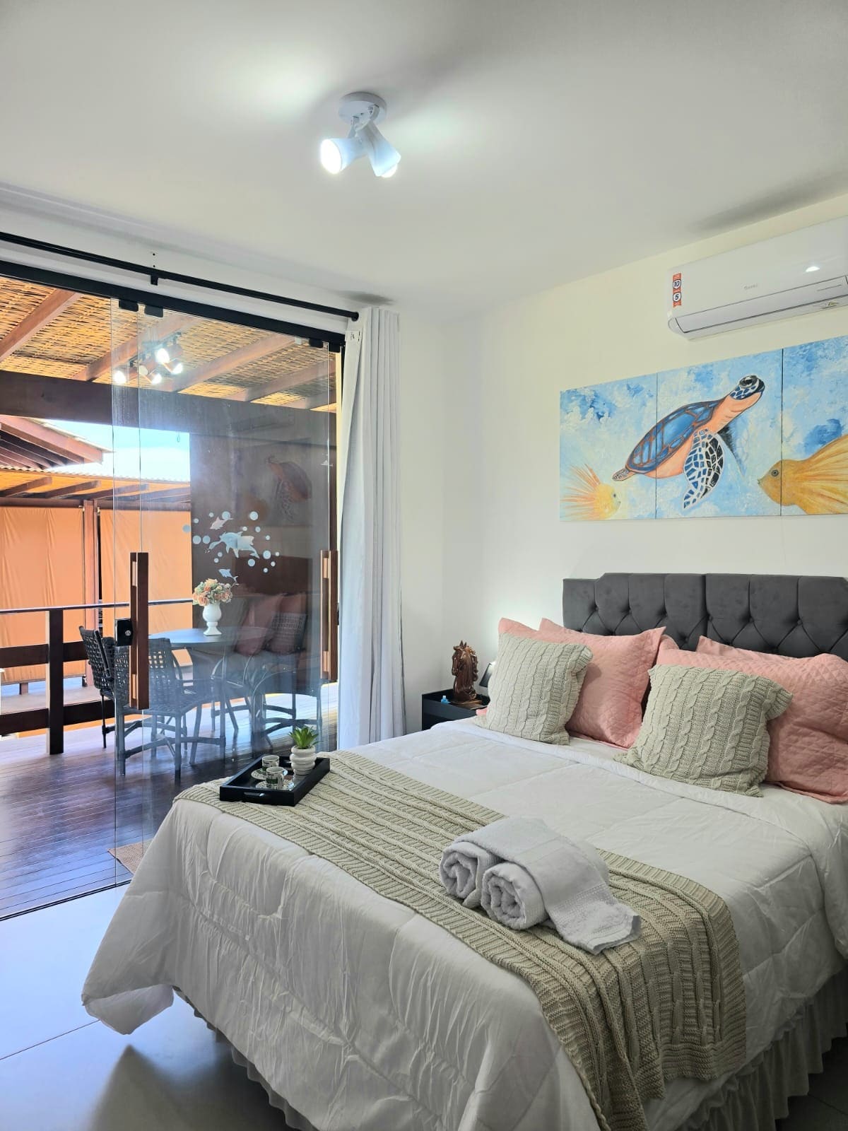 The apartment is located in Village Lagoa Ville, right on the beach. The condominium has a swimming pool, barbecue area, and leisure area. It has two suites, a living room, an equipped kitchen, a balcony, and a small terrace on the 2nd floor. Each bedroom has a double bed, and one of them has two extra mattresses. It has 24-hour concierge service and local security. Next to it is the Itacimirim Lagoon, a calm and secluded environment. It is 5 km from Praia do Forte. Wi-Fi, Netflix, and books.