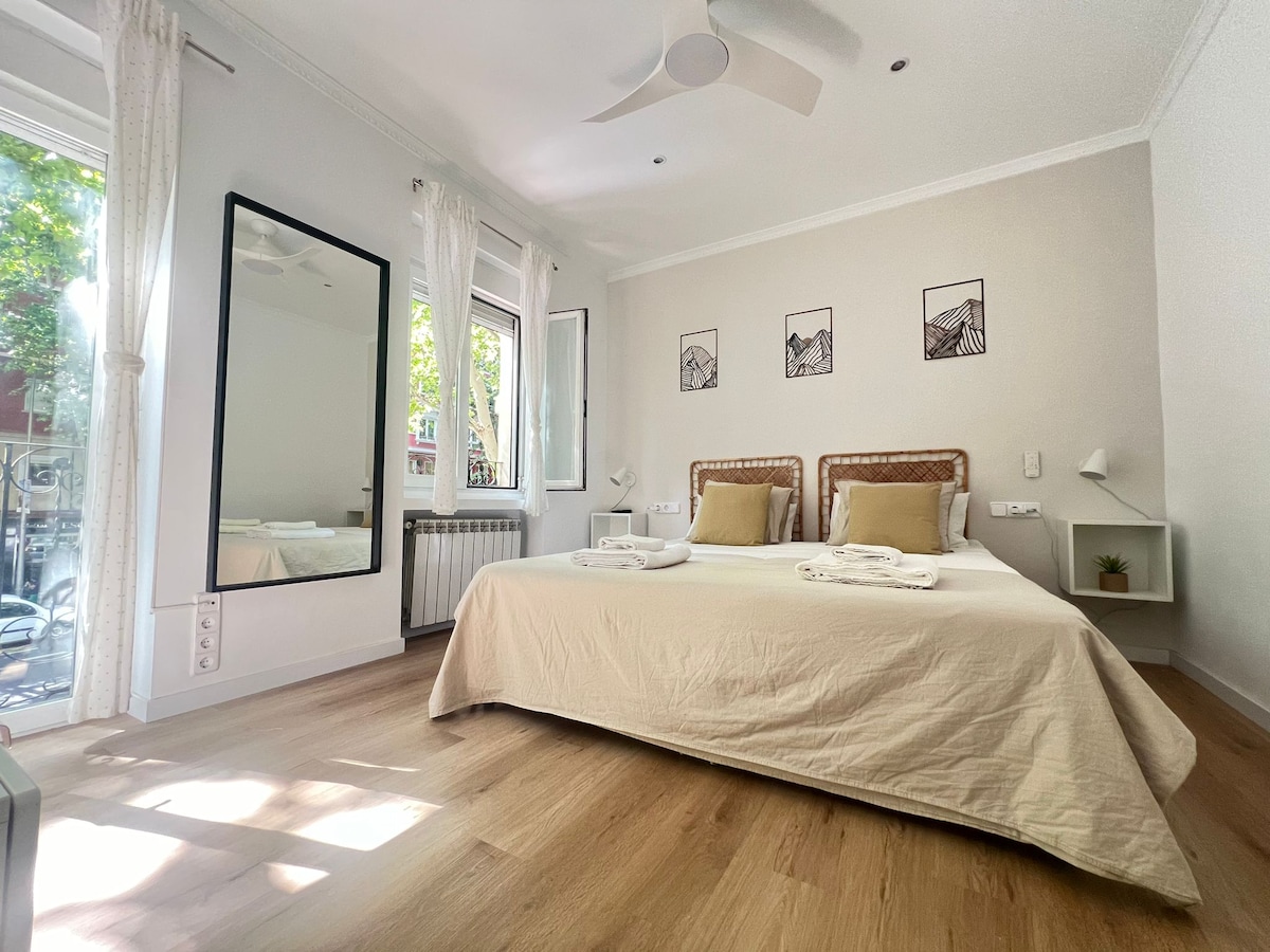 Magnificent 45 square meter apartment in the heart of Madrid. With spectacular design and decoration, spacious areas, and high ceilings, the apartment is equipped with everything you need for your stay in Madrid. The living room has three balconies overlooking the street that provide great brightness to the flat. The bedroom has an en-suite bathroom and a work desk. From the apartment, you can walk to almost all the iconic points of Madrid.