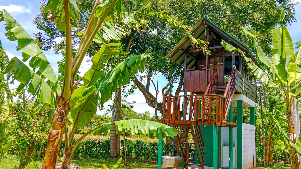 Discover the ultimate escape at Pride Rock Villa, nestled in the heart of Sigiriya. Our charming treehouse is a haven for two, offering the perfect blend of tranquility and adventure. Elevated amidst lush greenery, this clean and cozy retreat immerses you in the serenity of nature. Wake up to the melody of birdsong and enjoy your breakfast with panoramic views of the vibrant forest. Enhance your stay with our curated experiences, including village tours, an unforgettable elephant safaris
