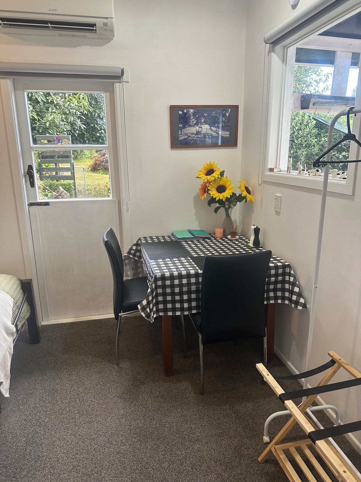 Come relax in a warm vibe, gorgeous decor, spacious studio under the oaks…. with all mod cons and creature comforts supplied…. complete with a 1955 Bal Ami jukebox for your listening pleasure Wayyyyy better than a noisey motel - Super comfy Queen sized bed, tiled shower, full size fridge/freezer, microwave/oven /ceramic stove top. Treat yourself to a little bit rural, little bit fabulous private pad to enjoy & chill in. Close to Hobbiton Close to expressway & airport & Bootleg Brewery