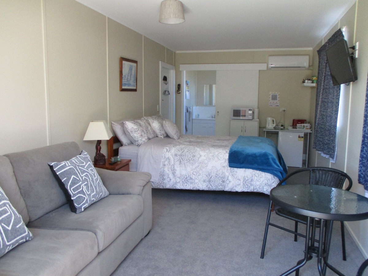 Located close to town, parks, cycle tracks, trails and cafe. Studio unit is self-contained, separate entrance, off road parking, self check in, kitchenette, laundry, shower, separate toilet. Deck overlooks vegetable garden. The unit & garden are private and quiet. ELECTRIC VEHICLE charging available. Secure storage for motorbikes & cycles. Unit has queen bed, heat pump/air-con. Tea/coffee/milk, light breakfast foods provided. Babies OK if you provide portacot, advanced notice needed.