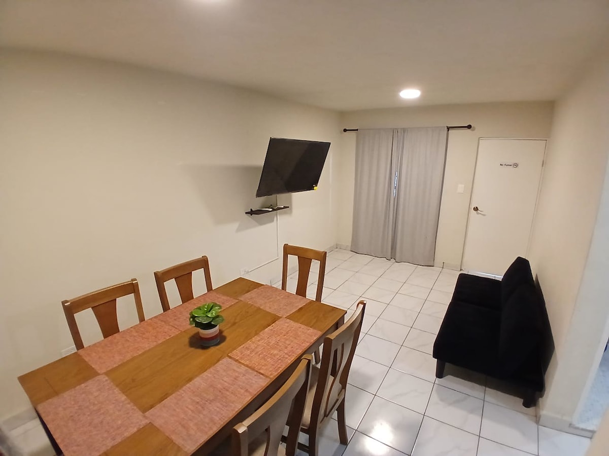 🏡 Cómodo departamento en zona segura y centrica🌟 con todo lo que necesitas: A/C en recámaras y sala, WiFi rápido , cocina equipada y Smart TV con Netflix, Prime y Max 📺. A solo 5 min de USA 🇺🇸, 25 minutos de la playa 🌴 y 15 minutos de ciudad Industrial, con estacionamiento privado 🚗.