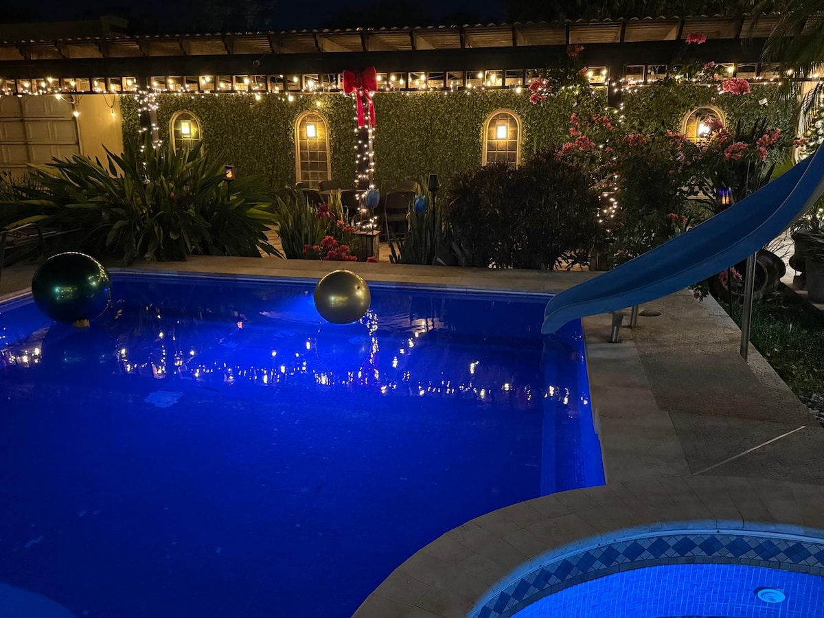Experience comfort in our 4-bed, 2-bath Airbnb: -Master: King bed, private bath, walk-in closet, Smart TV, dresser, chest, nightstand -2nd: Bunk bed (full & twin), closet, chest -3rd: 2 twin beds, Smart TV, closet, dresser, nightstand -4th: Queen bed, Smart TV, closet, dresser, nightstand Enjoy a pool, spacious backyard, 2 BBQ grills, dedicated workspace with a computer, an 8-seat dining table, and a living room with a 65” smart TV. Fully equipped kitchen and laundry for a seamless stay.