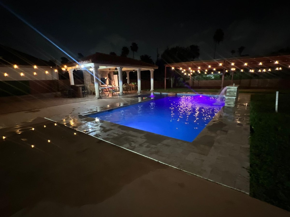 Relax in this brand new house in a peaceful neighborhood, in a new subdivision Jardines de Sevilla with a beautiful backyard fully fenced and swimming pool, 5 minutes from the airport and 20 minutes from SpaceX and Boca Chica Beach, 35 minutes from South Padre Island.