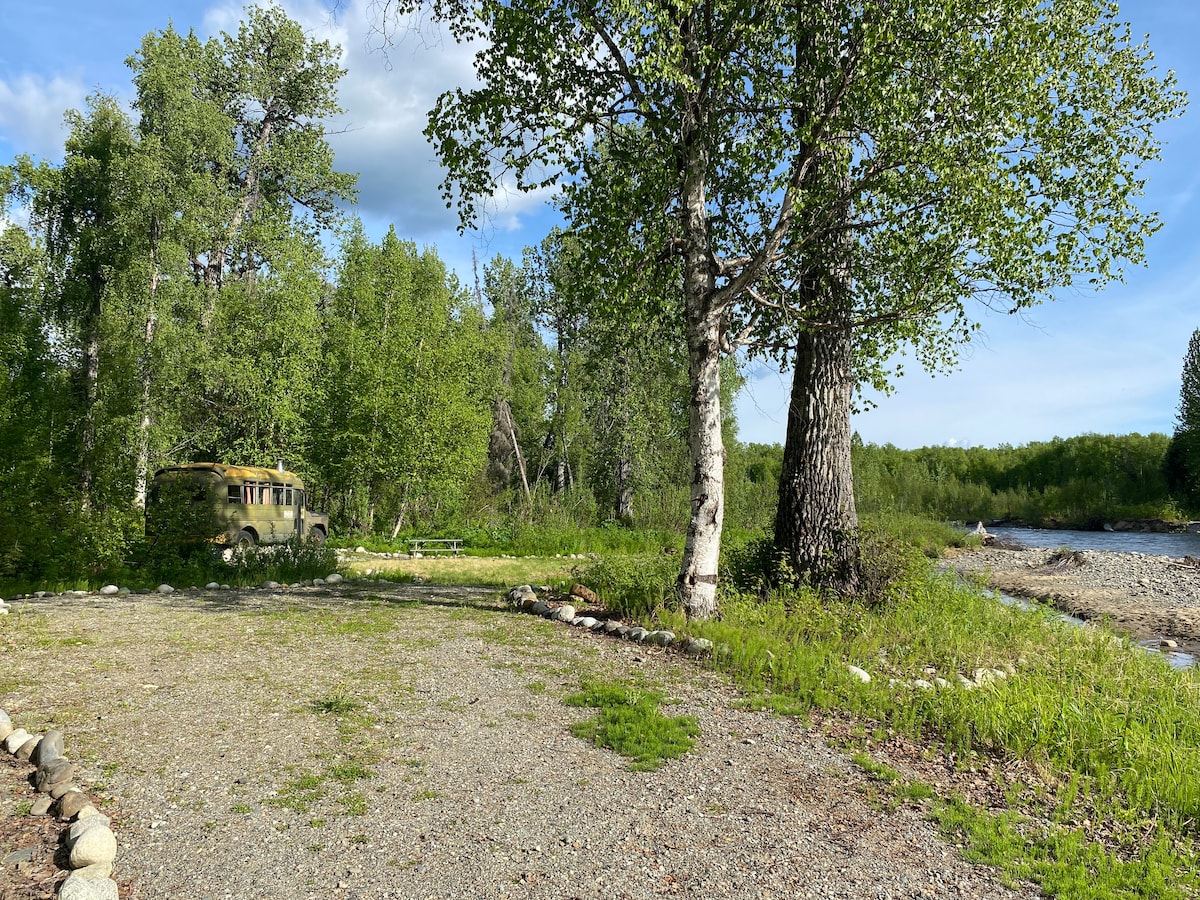 Welcome to PEACE, our 1964 Dodge Skoolie. She rests Creekside on beautiful Willow Creek off Hatcher pass. Peace is comfortably furnished for an unforgettable waterfront Glamping adventure. Peace is an OFF GRID (no electricity), DRY (no running water) unit. Outhouse for your “personal duty”. Conveniently located 75 miles north of Anchorage and 39 miles south of Talkeetna. Nearby Adventure possibilities include world class fishing, atv tours, hiking, rafting, kayaking and much more!