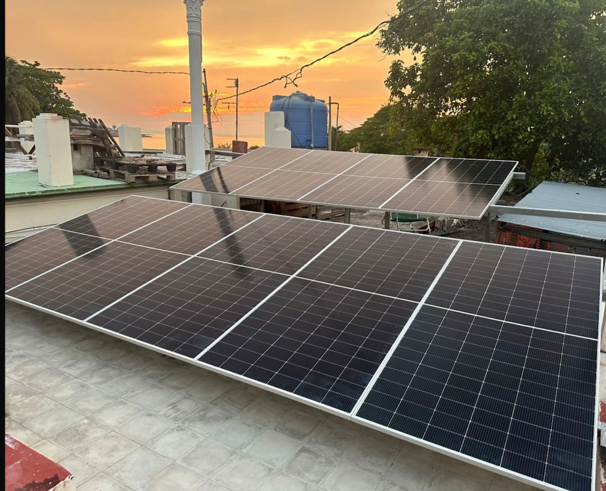 Beautiful oceanfront views just 9km from Varadero, energy generated by solar panels and backup batteries, our own taxi available for our guests, plenty of privacy, a large terrace with a pergola, and a garden. Private parking, Wi-Fi, free internet, a domestic cell phone, a paddleboard, bicycles, and several board games are included. A/C is provided throughout the house, along with 2 bathrooms, a fully equipped kitchen, soundproof windows, and blinds. Everything you need for the little ones.