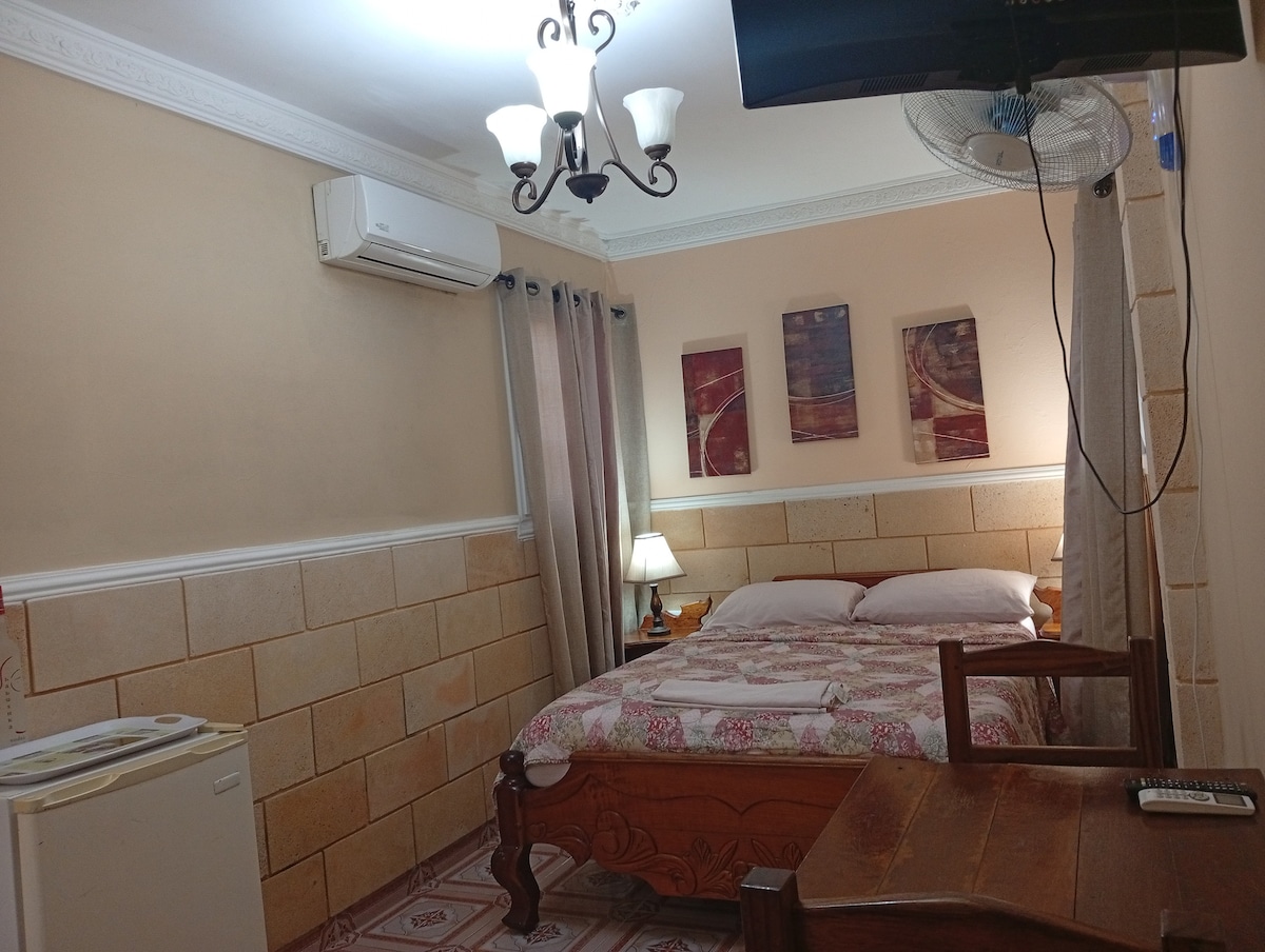 The spacious one-bedroom apartment is located in a lavish garden, FREE WIFI AND GENERATOR AND SOLAR PANNELS almost no power cuts , away from the buzzing noise of the city. The space is designed to suit a relaxing holiday where you can relax in your private hammock, reading your favorite book. p on your arrival welcomed by a large inflatable pool and sunbeds as well as traditional Cuban Ranchon.
