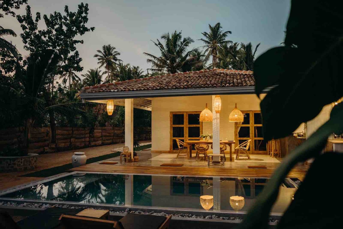 Fully equipped 2 bedroom villa with swimming pool and privet direct access to popular surf breaks of Madiha.Daily cleaning service and chef service in advance notice. Madiha is calm and beautiful very residential area. Close to famous doctors house and many other places, close to Polhena, mirissa and weligama beach . All the supplies are in Walking distance. Able to swim with turtles and many more activities around the villa .