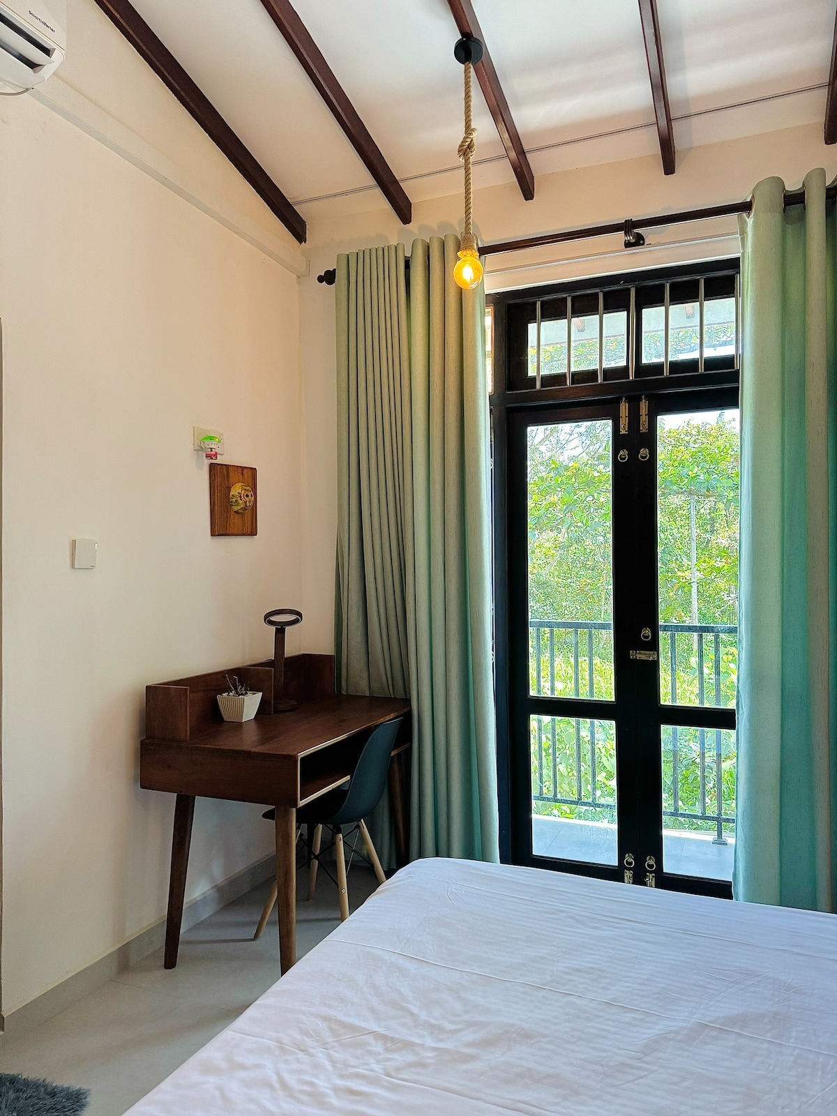 This ocean view suite offers laid-back luxury as natural light flows through the large windows to stir you awake at sunrise in this Weligama hotel room. A true highlight is watching the surf from your bed in a minimalist space awash with white walls and sea green tones. The suite includes a Marshall Bluetooth speaker, a desk and a mini fridge. The standard rate is for 2 persons, however it's possible to stay 3 with an extra bed at an additional charge of 50USD.