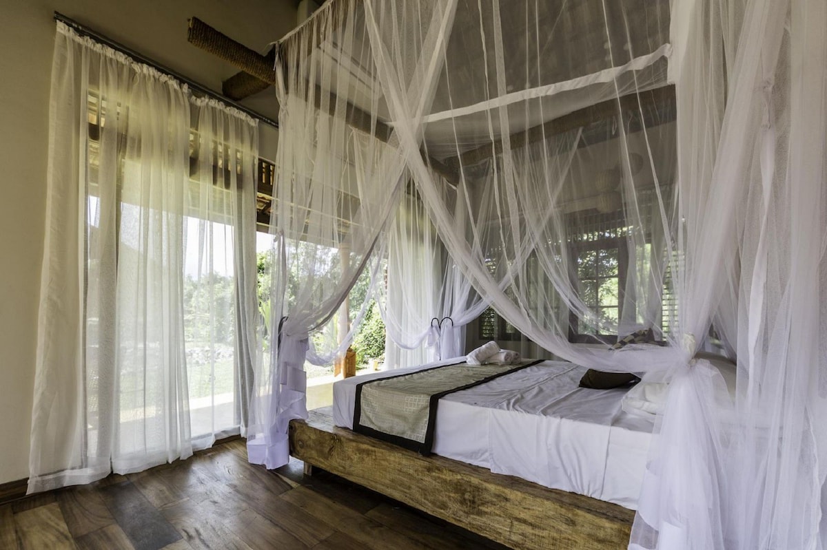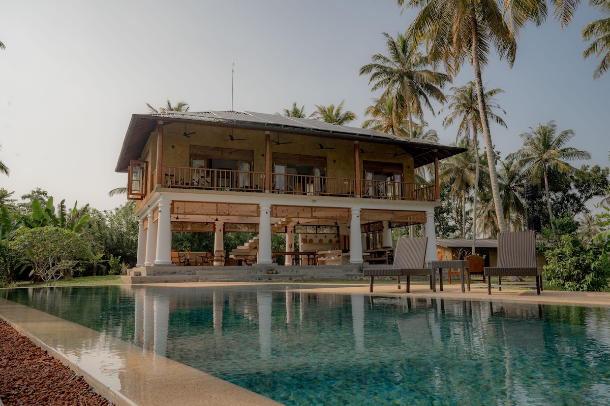 Cocoya is a working coconut and cinnamon plantation. Our house Sama means "Peace" in Sinhalese. It is designed to be a simple, open and spacious plantation home that connects with nature. It features an open living space, a kitchen and direct access to a 17m pool. Upstairs we have a master suite and junior bedroom that share a balcony with plantation views. Both have ensuite open-air showers. Guests enjoy a fully equipped kitchen and exclusive pool access. We do not have air-conditioning.